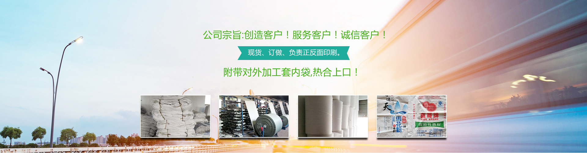 本公司常年生產(chǎn): 編織袋、彩膜、食品袋、集裝袋、飼料袋、化肥袋、水泥袋、化工袋、普危包裝袋、坯布專用內(nèi)袋、包皮、印染廠整裝專用包裝、有現(xiàn)貨、也訂做、負責(zé)正反面印刷。附帶對外加工套內(nèi)袋,熱合上口!聯(lián)系人:王經(jīng)理。 公司宗旨:創(chuàng)造客戶!服務(wù)客戶!誠信客戶! 13256289338.17686389888